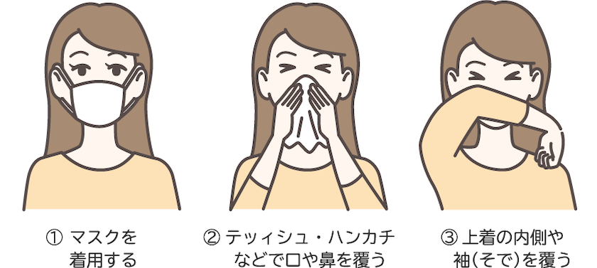 万が一マスクをしていないときに、せきやくしゃみが出そうになったら、せきエチケットを守りましょう。
